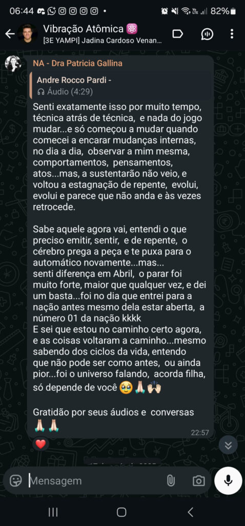 Sua virada: Perceber que o protocolo é um método completo, mas que te convida à autorresponsabilidade e te apoia com prática, não com teoria solta.
